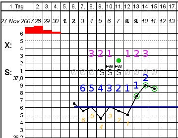 Aus der Sicht der Temperatur: Die mögliche Ovulation war vier