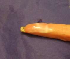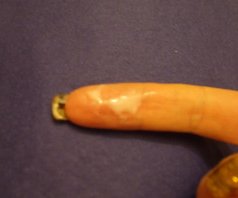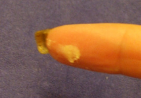 Der obere, (untypisch) dickere Teil wirkt hier eher trüb,