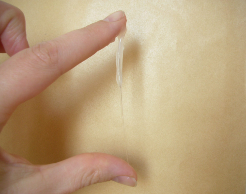 Wunderschöner, klarer, spinnbarer Zervixschleim, der hier auf