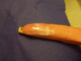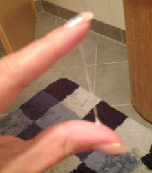 Hier sehen wir milchigen Zervixschleim von Antonella.
